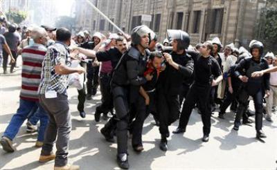 La cadena de televisión egipcia OnTV ha iniciado una retransmisión en directo de la intervención policial, en la que se puede ver a decenas de agentes y militares con blindaje disparando gases lacrimógenos contra los presentes. Activistas han asegurado que también han usado fuego real.