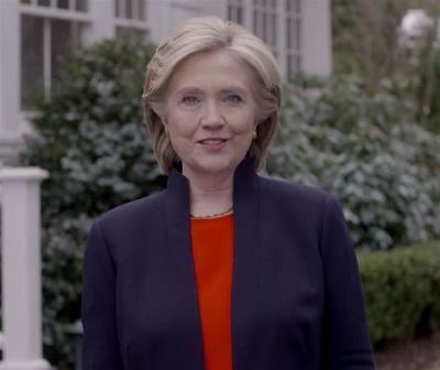 El vídeo concluye con el nombre de su campaña, Hillary for America (Hillary por América) circunscrita en un logotipo de una gran H azul con la línea horizontal convertida en una flecha que apunta hacia la derecha.