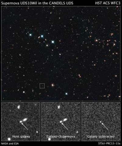 La supernova UDS10Wil, apodada SN Wilson en alusión al presidente estadounidense Woodrow Wilson, explotó hace más de 10.000 millones de años.
