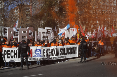 En torno a 2.000 personas se han manifestado este martes frente a la sede del Ministerio de Industria, Comercio y Turismo para exigirle "valentía" al Gobierno para que "intervenga" estas plantas. A esta convocatoria han asistido representantes políticos de Podemos, IU y Ciudadanos.