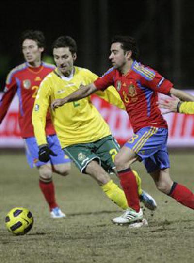 Era sólo un aviso. Enfrente estuvo la número 55 del ránking FIFA, pero a España eso no le importa. La pauta es siempre la misma, esté quien esté delante. Así, Xavi, uno de los cuatro centenarios de la historia del fútbol nacional, ahí es nada, golpeó desde fuera del área en el minuto 18 y un rebote de Skerla sorprendió a Karcemarskas, que vio cómo el esférico le superaba por arriba.