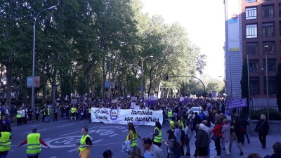 La marea morada, que ha expresado su "vergüenza" por la resolución judicial, ha recorrido en grupo varias calles céntricas de la capital durante dos horas hasta acceder a la Plaza de la Villa de Paris, frente a la sede del Supremo.