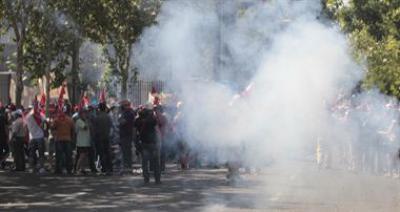 Han resultado heridos una decena de personas, ocho de ellos policías, dos manifestantes, un fotógrafo y un cámara de televisión que cubrían el acto.