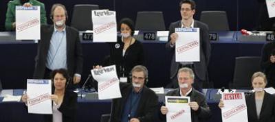 Socialistas, liberales, verdes e Izquierda Unitaria han denunciado que esta ley no se ajusta a los valores europeos. De hecho, varios eurodiputados, entre ellos el de Iniciativa per Catalunya-Verds, Raül Romeva, se han puesto esparadrapos en la boca en alusión a lo que consideran una ley mordaza. Sólo el presidente del grupo popular, Joseph Daul, ha defendido tibiamente a Orban, aunque ha recordado su compromiso de modificar la ley si la Comisión concluye que vulnera el derecho comunitario.