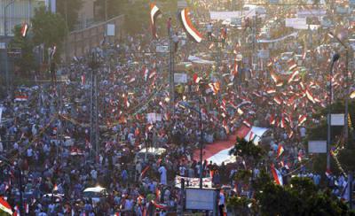 Cientos de miles de personas se han concentrado en la cairota plaza Tahrir y junto al palacio presidencial en apoyo de las nuevas autoridades, según informa "Al Ahram", que cifra en "millones" los egipcios que han salido a las calles de Egipto para respaldar al Ejército. Además de en Alejandría, se han registrado incidentes en El Cairo y Gharbiya.