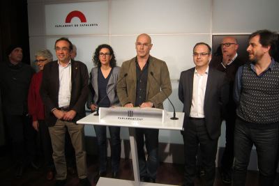 Junto a él han estado en la rueda de prensa en el Parlament la primera secretaria de ERC, Marta Rovira; el vicesecretario general de Coordinación Institucional de CDC, Lluís Corominas; el coordinador general de CDC, Josep Rull; el presidente de JxSí en el Parlament, Jordi Turull, y los diputados Toni Comín, Muriel Casals, Magda Casamitjana y Eduardo Reyes, entre otros.