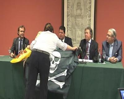 España puede vivir sin Gibraltar pero Gibraltar a duras penas podría sobrevivir sin España. Con estas palabras terminaba el periodista José María Carrascal la presentación en Sevilla de su libro “La batalla de Gibraltar” invitado por las Asociaciones Culturales ADEMÁN y Fernando III. Una presentación tan concurrida que estaba llena hasta la bandera … la bandera de las tibias y la calavera que uno de los presentes le había entregado en la misma ciudad, unos meses antes, al ministro Picardo.