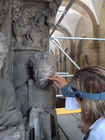 Asimismo, además de realizar estudios planimétricos y fotográficos detallados, se han identificado los puntos críticos de entrada de agua y su recorrido hasta llegar a las esculturas, así como la afectación por sales. El estudio de biodeterioro se ha realizado a partir de las colonias biológicas que se forman principalmente en la zona sur del Pórtico.