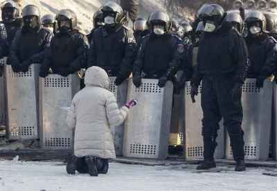 En el edificio ondea aún la bandera rusa izada durante el asalto y manifestación del domingo y activistas enmascarados custodian la azotea del inmueble armados con bates de béisbol y porras sustraídas a los policías durante los breves disturbios ocurridos durante la toma.