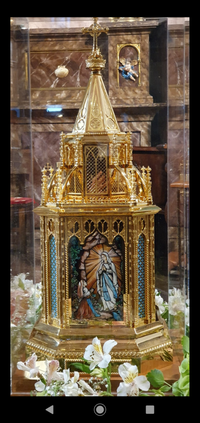 En este año 2019 los devotos marianos de Oviedo disfrutamos de las reliquias de Santa Bernardette en la Basílica Catedral Metropolitana de Oviedo. Con una Catedral abarrotada de gente entraron, por el pórtico del Templo, las sagradas reliquias.