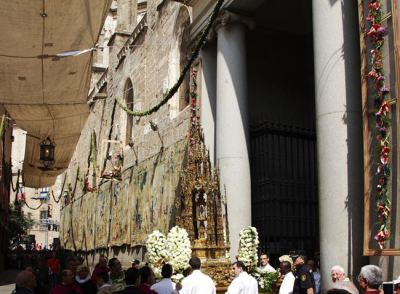 Como es habitual, uno de los momentos más solemnes se ha producido frente al Arco de la Sangre, con la tradicional alocución del arzobispo, que ante cientos de fieles congregados y ante la Sagrada Forma, ha dicho que aunque el orden en la sociedad es una labor del Estado, "la Iglesia no puede ni debe quedarse al margen de la justicia".