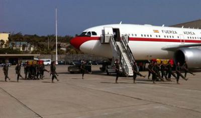 Los féretros descendieron del Airbus A3 envueltos en banderas de España y abandonaron la pista en 2 coches fúnebres escoltados por un coche de la Guardia Civil.