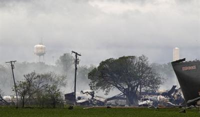 Los equipos de rescate están trabajando, a pesar de la fría lluvia que cae este jueves, en la búsqueda de posibles víctimas entre los escombros a los que ha quedado reducida la fábrica de fertilizantes en la que se produjo anoche una explosión en West, en Texas, y las viviendas y edificios colindantes. Por ahora, las autoridades hablan de entre cinco y diez muertos, pero también hay varios desaparecidos.