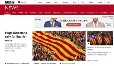 Así, en Reino Unido la BBC abre su portada digital con el titular 'Una gigantesca marcha a favor de la unidad comienza en Barcelona' y The Guardian publica 'Miles se unen a la manifestación en Barcelona contra la independencia catalana'. The Times titula 'Manifestantes anti-independentistas devuelven el golpe mientras la crisis catalana se hace más profunda' y The Telegraph tiene como primera noticia 'España en crisis. Catalanes a favor de la unidad marchan para rechazar la declaración de independencia'.