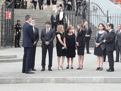 Los Reyes, Rajoy, Puigdemont y Colau asisten a la misa en memoria de las víctimas