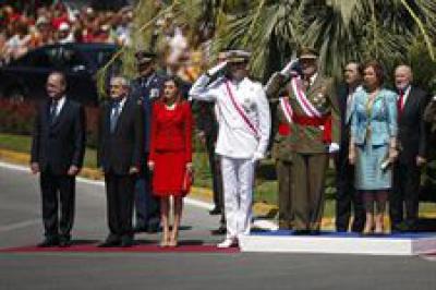 La puntualidad ha caracterizado la celebración militar, ya que los monarcas han llegado a la céntrica plaza del General Torrijos apenas dos minutos después de las 12.00 horas, siendo recibidos por la ministra de Defensa, Carme Chacón, y por el presidente de la Junta de Andalucía, José Antonio Griñan, además del Jefe del Estado Mayor de la Defensa (JEMAD), el general del Aire José Julio Rodríguez, y el alcalde electo de Málaga, Francisco de la Torre.