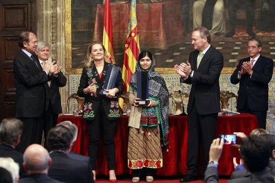 La niña Malala Yousafzai, que en octubre de 2012 fue víctima de un atentado terrorista talibán en Pakistán después de luchar por el derecho de las mujeres a ir a la escuela, ha reivindicado este sábado tras recibir en Valencia el XXII Premio Convivencia de la Fundación Profesor Manuel Broseta el valor de la voz para luchar contra el terrorismo y las injusticias, ya que "las palabras son más poderosas que las pistolas".