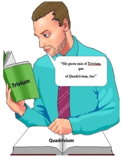 Como ya saben, durante la Edad Media la enseñanza estaba dividida en dos secciones: Trivium y Quadrivium. El primero abarcaba la retórica, la dialéctica y la gramática. El segundo la música, la geometría, la aritmética y la astronomía.
