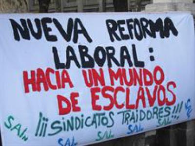 En las pancartas que portan algunos manifestantes pueden leerse mensajes como Nueva reforma laboral. Hacia un mundo de esclavos, y el ambiente era festivo en un día en el que no llueve sobre Madrid, aunque el cielo está bastante nublado.