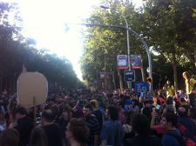 Antes de dar por finalizada la concentración de los indignados en la madrileña plaza de las Cortes, la organización ha leído un comunicado que ha sido recibido por las miles de personas allí reunidas con aplausos y gritos de "Que viva la lucha de la clase obrera".