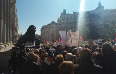 Durante la concentración, varios diputados de Podemos, IU, En Comú Podem y En Marea se han unido a la protesta, que ha llegado a extenderse por toda la Carrera de San Jerónimo, Plaza de las Cortes incluida, llegando casi a la propia Plaza de Neptuno.