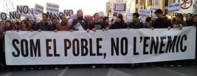 Miles de personas se han manifestado este miércoles contra los recortes educativos y la actuación policial, después de las últimas protestas estudiantiles llevadas a cabo en Valencia que se han saldado con unos 40 detenidos, tras una pancarta portada por jóvenes con el lema Som el poble, no l enemic (Somos el pueblo no el enemigo), en presencia de tres furgones de la Policía y con un helicóptero sobrevolando la zona.