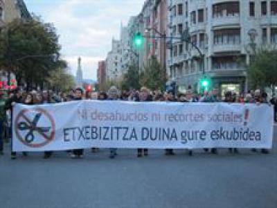 Miles de personas han recorrido este sábado las calles de Bilbao para mostrar su rechazo a los desahucios y los recortes sociales, en una movilización en la que se ha denunciado que "los poderes públicos han beneficiado a quienes han hecho negocio con la vivienda, los constructores y la banca".
