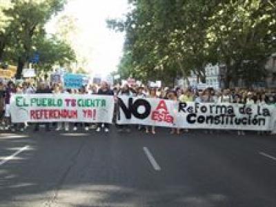 Bajo el lema El pueblo también cuenta, referéndum ya! y No a está reforma de la constitución, miles de personas se han reunido en la capital española convocados por Democracia Real, Juventud sin futuro y Acampada Sol para pedir que "escuchen al pueblo" a la hora de reformar la Constitución.