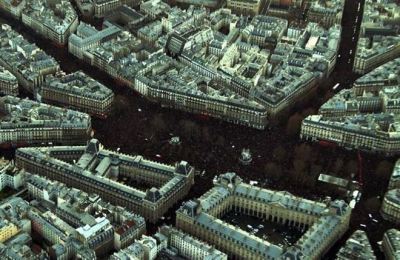 La Marcha Republicana, encabezada por los supervivientes y familiares de las víctimas, seguidas de líderes internacionales y de todas las religiones tras el presidente francés, François Hollande, enarbolando una pancarta "Je Suis Charlie", avanza por las calles de la capital en una atmósfera de concordia, pero bajo la vigilancia de más de 2.200 agentes de Policía fuertemente armados.