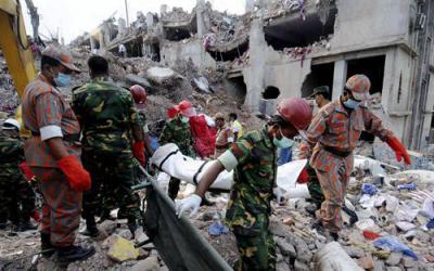 el 24 de abril se derrumbó un edificio de varios pisos que albergaba cinco fábricas de ropa