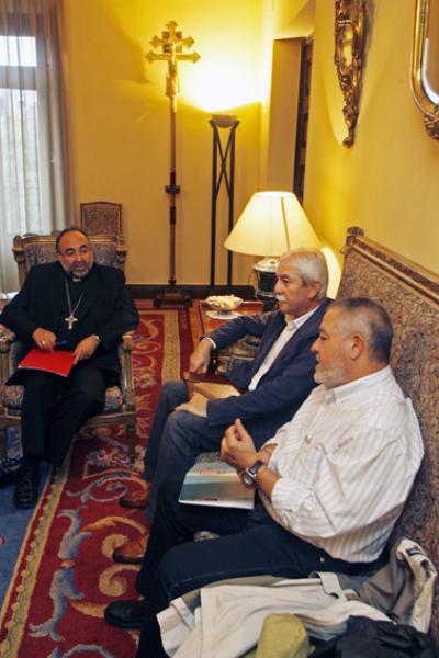 El Arzobispo de Oviedo, mons. Jesús Sanz Montes, recibió esta mañana en las dependencias del arzobispado a los Secretarios Generales de U.G.T., Justo Rodríguez Braga, y de Comisiones Obreras, Antonio Pino Cancelo, acompañados del Secretario de Organización y Comunicación de U.G.T., Pedro García Rodríguez, y el Secretario de Relaciones Institucionales de CC.OO., Amable González Méndez.