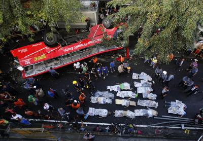 Mueren 21 personas al caer un autobús por un paso elevado en Filipinas