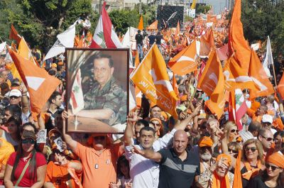 noti La concentración ha servido para respaldar las aspiraciones presidenciales de Aoun, ahora que el cargo está vacante. Los participantes han ondeado la bandera naranja del MPL de Aoun en el barrio de Baabda.