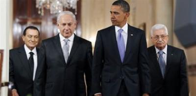 Ambos dirigentes hablaron momentos antes de sentarse a la mesa en una cena organizada por la Casa Blanca y a la que también asistieron el presidente de Estados Unidos, Barack Obama; el rey Abdalá de Jordania y el presidente egipcio, Hosni Mubarack.