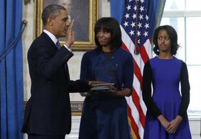 La ceremonia ha tenido que celebrarse porque la Constitución obliga al presidente electo a tomar posesión formal del cargo antes de las 12.00 horas del día 20 de enero, pero Obama repetirá mañana lunes su juramento en una ceremonia multitudinaria en el Capitolio, ya que tradicionalmente los actos de toma de posesión presidencial no se celebran en domingo.