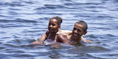 Horas después de su discurso ante la prensa, la Casa Blanca divulgó una fotografía de Obama jugueteando con su hija menor en aguas de Panama City, en una zona turística de playas de arena blanca de Florida.