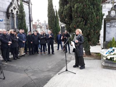 En el primer aniversario del asesinato tras la disolución de la organización terrorista, la presidenta de Covite ha dirigido el discurso a su hermano y ha cargado contra los "herederos" de ETA, que "quieren deshacerse de la sombra de la banda terrorista", y los nacionalistas vascos, "los rentistas del terror, que quieren seguir explotando los réditos políticos sin asumir sus responsabilidades ni sus complicidades".