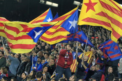 Posteriormente, en el minuto 17, la hinchada azulgrana ha comenzado a corear el tradicional grito de 'Independència', que resuena en todos los partidos en el Camp Nou, que la afición rival trató de silenciar con abucheos y gritos de 'Fuera, fuera'.