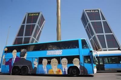 El 'Tramabús' de Podemos realizó este lunes su primera ruta por Madrid levantando críticas y la polémica por señalar a políticos, grandes empresas, periodistas e instituciones públicas como piezas clave de la red de relaciones de poder que, a su juicio, existe entre las élites económicas y políticas, y que amenaza la democracia.