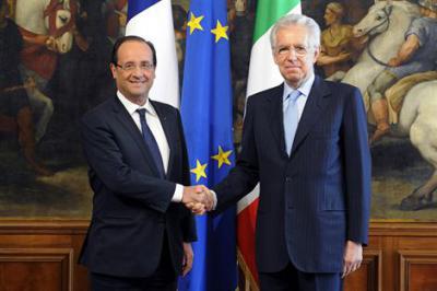 Policía y manifestantes italianos se enfrentan mientras Monti y Hollande se reúnen