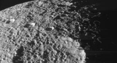 Las imágenes de Dione destacan una accidentada y llena de impactos superficie lunar. Más imágenes en bruto del sobrevuelo de Encelado , apodado "E11", están disponibles en: http://saturn.jpl.nasa.gov/photos/raw/.