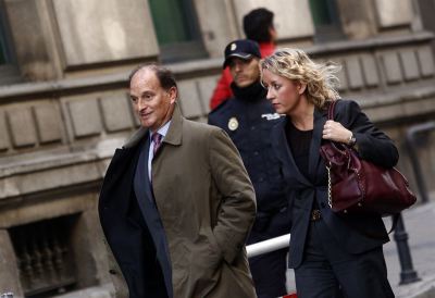 Los afectados por la compra de participaciones preferentes de la caja madrileña han increpado a Sepúlveda, ex marido de la que fuera ministra de Sanidad y considerada partícipe a título lucrativo de la trama Ana Mato, a su paso por la esquina de Prim con Conde de Xiquena.