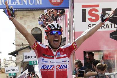 Joaquim Rodríguez lanzó un ataque a falta de 200 metros sobre el pavés del muro de Assasi, un puerto de cuarta categoría, pero con tramos de hasta el 15 por ciento, y sumó su primer triunfo en el Giro de Italia después de 6 participaciones.