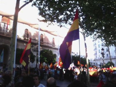 Así, en un lado de la plaza se ha celebrado la denominada "concentración unitaria por la República", convocada a través de las redes sociales con el respaldo de la plataforma 'Sevilla por la República', de la que toman parte IU-CA, el PCA, CCOO, UGT, Ustea, el SAT, la CUT-BAI o el Foro por la Memoria, entre otras organizaciones. Los partidarios de la república, que han superado en número a los monárquicos, han ondeado banderas tricolor y de Andalucía con el ya conocido cántico de "España, mañana, será republicana", concluyendo el acto con la ya tradicional marcha hasta las Setas de la plaza de la Encarnación.