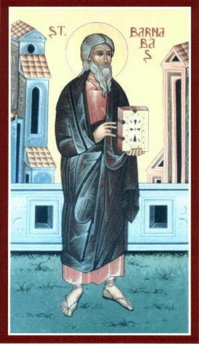 "Bernabé", que significa "hijo de la exhortación" (Hch 4, 36) o "hijo del consuelo", es el sobrenombre de un judío levita oriundo de Chipre. Habiéndose establecido en Jerusalén, fue uno de los primeros en abrazar el cristianismo, tras la resurrección del Señor. Con gran generosidad vendió un campo de su propiedad y entregó el dinero a los Apóstoles para las necesidades de la Iglesia (cf. Hch 4, 37). Se hizo garante de la conversión de Saulo ante la comunidad cristiana de Jerusalén, que todavía desconfiaba de su antiguo perseguidor (cf. Hch 9, 27). Enviado a Antioquía de Siria, fue a buscar a Pablo, en Tarso, donde se había retirado, y con él pasó un año entero, dedicándose a la evangelización de esa importante ciudad, en cuya Iglesia Bernabé era conocido como profeta y doctor (cf. Hch 13, 1).