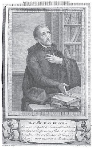 Juan de Ávila nació en 1499 ó 1500 en Almodóvar del Campo (Ciudad Real), donde creció y se formó en un ambiente cristiano. Estudió Leyes en la Universidad de Salamanca y Artes y Teología en la de Alcalá. Fue ordenado sacerdote en 1526. Juan de Ávila fue declarado patrono del clero secular de España en 1946 por el Papa Pío XII y canonizado en 1970 por Pablo VI.