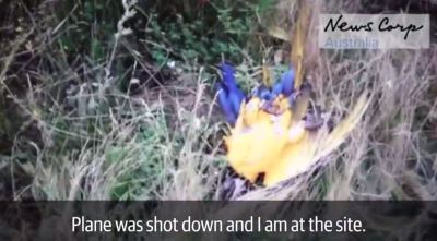Las imágenes, difundidas por el conglomerado mediático australiano News Corp, muestran a un grupo de rebeldes en mitad del escenario del accidente, rodeados de los restos del fuselaje y equipajes de los pasajeros.