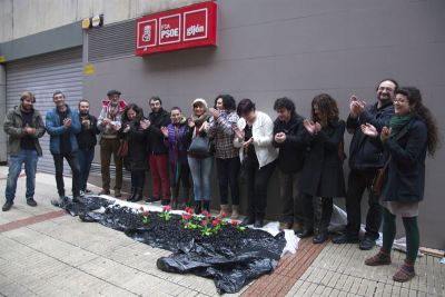 La acción estaba promovida por 'Somos Asturies-Xixón' y a ella se sumaron integrantes de ese proyecto llegados desde Oviedo, Siero, Langreo, Mieres, Corvera, Llanera y Cudillero. Los participantes se concentraron en la plaza de Europa para dirigirse a pie hasta la sede del PSOE en Gijón.