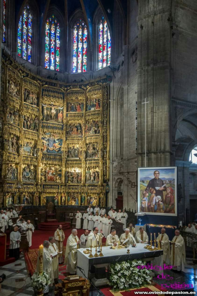 La ceremonia de beatificación se celebró en la S.I. Catedral Basílica Metropolitana de Oviedo.Participó la Adoración Nocturna junto con la Cofradía de Jesús Cautivo, en el servicio de orden de la misma, con los adoradores Manuel Antonio Jovellanos y José Manuel Miranda Alonso. La beatificación fue presidida por el Cardenal Angelo Amato, representante del Papa Francisco. Junto con él concelebraron el Nuncio de su Santidad, el Arzobispo de Oviedo y varios Obispos españoles y franceses en un número de diez.