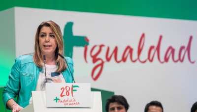 En clave orgánica, Susana Díaz, que fue candidata a la Secretaría General del PSOE en las primarias de mayo de 2017 en las que finalmente venció Pedro Sánchez, se declara "contenta" porque ve a su partido "defendiendo la España en la que creo, una España unida que defiende la igualdad de los ciudadanos".